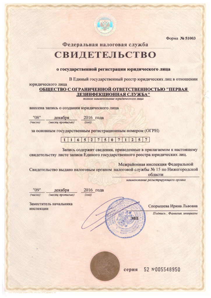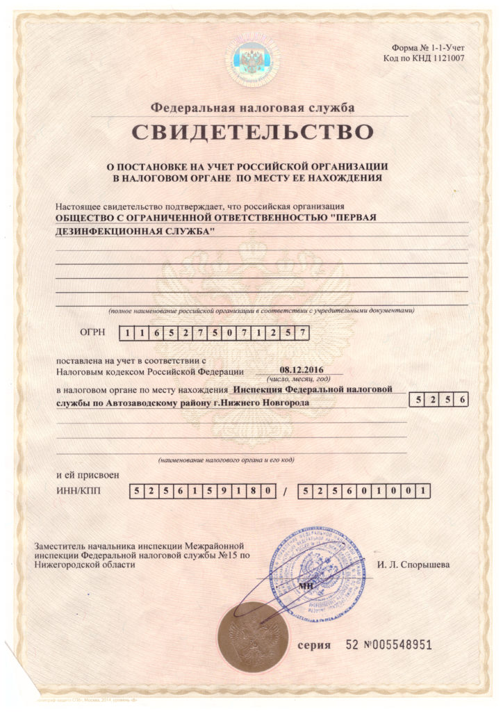 Свидетельство о регистрации